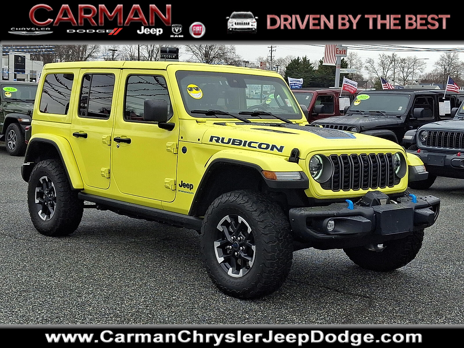 2024 Jeep Wrangler Rubicon X 4xe 2.0L I4 DOHC 8-Speed Automatic 4D Sport Utility 4WD High Velocity ClearcoatCarman Auto group is Delaware Pennsylvania New Jersey and Maryland's go to destination for quality used cars and trucks !!! We have proudly serviced Wilmington Newcastle Newark and Middletown for over 50 years !!!Certified. FCA US LLC Certified Pre-Owned Details: * 125 Point Inspection * Roadside Assistance * Limited Warranty: 3 Month/3000 Mile (whichever comes first) after new car warranty expires or from certified purchase date * Vehicle History * Vehicles Up to 75000 Miles and/or 5 Model Years. 24-Hour Towing & Roadside Assistance Car Rental Allowance CARFAX Vehicle History ReportTM and an Introductory 3-month Subscription to SiriusXM Satellite Radio & Certified Warranty Upgrades * Transferable Warranty * Powertrain Limited Warranty: 84 Month/100000 Mile (whichever comes first) from original in-service date * Warranty Deductible: $100Wrangler Rubicon X 4xe 4D Sport Utility 2.0L I4 DOHC 8-Speed Automatic 4WD High Velocity Clearcoat Black Leather *ALL WHEEL DRIVE *CHRYSLER CERTIFIED *CLEAN VEHICLE HISTORY ****** NO ACCIDENTS*** *NAVIGATION *ONE OWNER *RECENT CARMAN TRADE *REMAINDER OF FACTORY WARRANTY 12.3"Touchscreen Display 4.10 Rear Axle Ratio 4G LTE Wi-Fi Hot Spot 7 & 4 Pin Wiring Harness 700 Amp Maintenance Free Battery Acoustic Front Seat Area Carpet Acoustic Laminated Front Door Glass Alpine Premium Audio System Apple CarPlay Auto High Beam Headlamp Control Auto-Dimming Rear-View Mirror Blind Spot & Cross Path Detection Body Color 3-Piece Hard Top Body Color Rubicon Highline Flare Connected Travel & Traffic Services Connectivity - US/Canada Disassociated Touchscreen Display Freedom Panel Storage Bag Google Android Auto GPS Navigation HD Radio Heated Front Seats Heated Steering Wheel Integrated Center Stack Radio Integrated Off-Road Camera Integrated Voice Command w/Bluetooth Leather Wrapped Park Brake Handle Leather Wrapped Shift Knob MOPAR Hardtop Headliner Nappa Leather Seats No Soft Top ParkSense Rear Park Assist System Power 4-Way Driver Lumbar Adjust Power 4-Way Passenger Lumbar Adjust Power Adjust 8-Way Driver Seat Power Adjust 8-Way Front Passenger Seat Premium Door Trim Panel Quick Order Package 29Y Rubicon X Radio: Uconnect 5 Nav w/12.3"Display Rear Window Defroster Rear Window Wiper/Washer Remote Start System SiriusXM Radio Service SiriusXM w/360L Steel Front Bumper Steel Rear Bumper Trailer Tow Prep Package Universal Garage Door Opener Variably intermittent wipers.