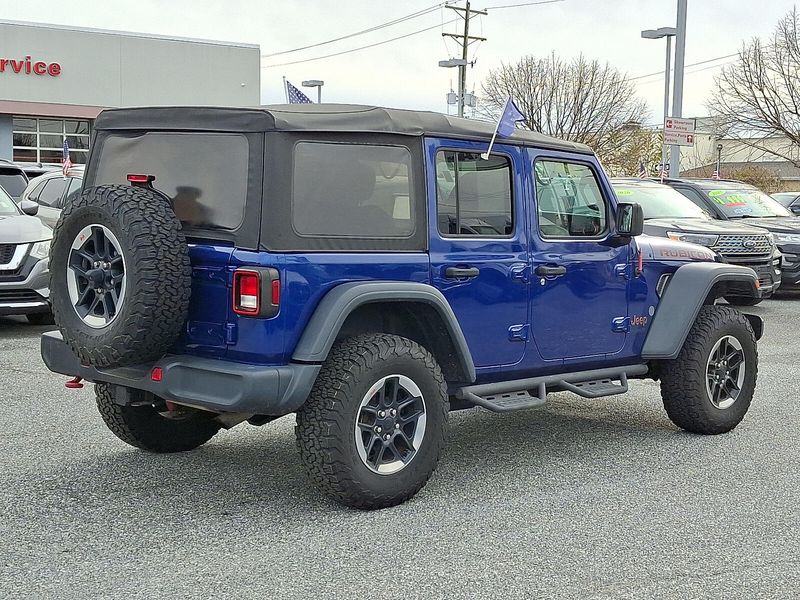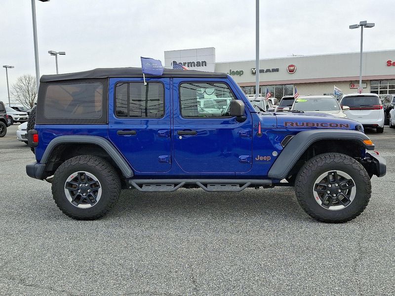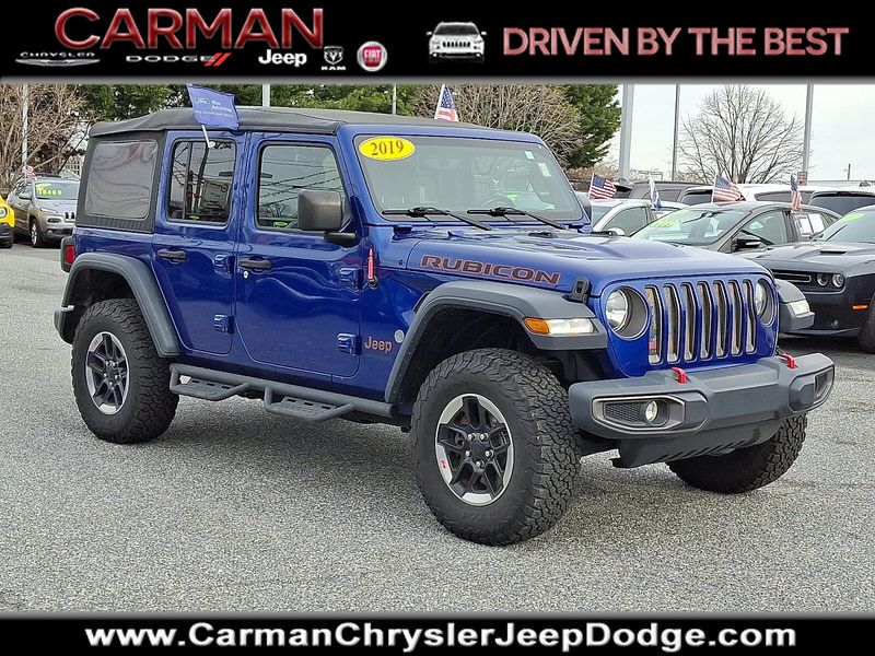 2019 Jeep Wrangler Unlimited Rubicon 2.0L I4 DOHC 8-Speed Automatic 4D Sport Utility 4WD Ocean Blue Metallic ClearcoatCarman Auto group is Delaware Pennsylvania New Jersey and Maryland's go to destination for quality used cars and trucks !!! We have proudly serviced Wilmington Newcastle Newark and Middletown for over 50 years !!!Certified. FCA US LLC Certified Pre-Owned Details: * Warranty Deductible: $100 * Vehicle History * Limited Warranty: 3 Month/3000 Mile (whichever comes first) after new car warranty expires or from certified purchase date * Powertrain Limited Warranty: 84 Month/100000 Mile (whichever comes first) from original in-service date * Roadside Assistance * Transferable Warranty * Vehicles Up to 75000 Miles and/or 5 Model Years. 24-Hour Towing & Roadside Assistance Car Rental Allowance CARFAX Vehicle History ReportTM and an Introductory 3-month Subscription to SiriusXM Satellite Radio & Certified Warranty Upgrades * 125 Point InspectionWrangler Unlimited Rubicon 4D Sport Utility 2.0L I4 DOHC 8-Speed Automatic 4WD Ocean Blue Metallic Clearcoat Black Cloth *CHRYSLER CERTIFIED *CLEAN VEHICLE HISTORY ****** NO ACCIDENTS*** *RECENT CARMAN TRADE 1-Year SiriusXM Guardian Trial 240 Amp Alternator 4-Wheel Disc Brakes 4.10 Rear Axle Ratio 4G LTE Wi-Fi Hot Spot 5-Year SiriusXM Traffic Service 5-Year SiriusXM Travel Link Service 7 & 4 Pin Wiring Harness 700 Amp Maintenance Free Battery 8.4"Radio & Premium Audio Group 8.4"Touchscreen Display ABS brakes Air Conditioning Apple CarPlay/Android Auto Auto-Dimming Rear-View Mirror Automatic temperature control Auxiliary Switches Brake assist Class II Receiver Hitch Compass Delay-off headlights Driver door bin Driver vanity mirror Dual front impact airbags Dual front side impact airbags Electronic Stability Control Emergency/Assistance Call For Details Visit DriveUconnect.ca Front anti-roll bar Front Bucket Seats Front Center Armrest w/Storage Front dual zone A/C Front fog lights Front reading lights Fully automatic headlights Garage door transmitter GPS Navigation HD Radio Heated door mirrors Illuminated entry Integrated roll-over protection Jeep Trail Rated Kit Leather steering wheel Low tire pressure warning Manufacturer's Statement of Origin (DISC) MOPAR All-Weather Floor Mats Non-Lock Fuel Cap w/o Discriminator Occupant sensing airbag Outside temperature display Panic alarm ParkView Rear Back-Up Camera Passenger door bin Passenger vanity mirror Performance Suspension Power door mirrors Power steering Power windows Premium Cloth Low-Back Bucket Seats Quick Order Package 28R Radio: Uconnect 4C Nav w/8.4"Display Rear anti-roll bar Rear reading lights Remote keyless entry Remote Start System Security system SiriusXM Traffic Plus SiriusXM Travel Link Speed control Split folding rear seat Steering wheel mounted audio controls Tachometer Telescoping steering wheel Tilt steering wheel Traction control Trailer Tow & HD Electrical Group Trip computer Variably intermittent wipers Voltmeter. Awards: * Motor Trend Automobiles of the year