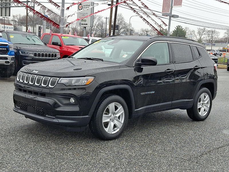 2022 Jeep Compass Latitude 2.4L I4 9-Speed 948TE Automatic 4D Sport Utility 4WD Diamond Black Crystal PearlcoatCarman Auto group is Delaware Pennsylvania New Jersey and Maryland's go to destination for quality used cars and trucks !!! We have proudly serviced Wilmington Newcastle Newark and Middletown for over 50 years !!!Certified. Jeep Combined Details: * Limited Warranty: 3 Month/3000 Mile Runs From the Date of the CPOV Sale or at the expiration of the remaining 3/36 Basic New Vehicle Warranty (whichever is more beneficial to the customer) (for Certified Pre-Owned Go program) 3 Month/3000 Mile (whichever comes first) after new car warranty expires or from certified purchase date (for Certified Pre-Owned Gold program) 3 Month/3000 Mile (whichever comes first) after new car warranty expires or from certified purchase date (for FCA US LLC Certified Pre-Owned program) * Warranty Deductible: $100 * Powertrain Limited Warranty: 84 Month/100000 Mile (whichever comes first) from original in-service date (for FCA US LLC Certified Pre-Owned program) * 125 Point Inspection * Vehicles Up to 75000 Miles and/or 5 Model Years. 24-Hour Towing & Roadside Assistance Car Rental Allowance CARFAX Vehicle History ReportTM and an Introductory 3-month Subscription to SiriusXM Satellite Radio & Certified Warranty Upgrades (for FCA US LLC Certified Pre-Owned program) Vehicles Between 6-10 Model Years and/or 75001-120000 Miles. Thorough Reconditioning Process Using Authentic Mopar Parts. 3-Month Trial Subscription for SiriusXM GuardianTM and Satellite Radio (for Certified Pre-Owned Go program) Vehicles Between 0-5 Model Years and/or 75000 Miles. Thorough Reconditioning Process Using Authentic Mopar Parts. 12 Month/12000 Mile Extended Care Premium Warranty Car Rental Allowance 3-Month Trial Subscription for SiriusXM GuardianTM and Satellite Radio (for Certified Pre-Owned Gold program) * Vehicle History * Roadside Assistance * Transferable Warranty (for FCA US LLC Certified Pre-Owned program)Compass Latitude 4D Sport Utility 2.4L I4 9-Speed 948TE Automatic 4WD Diamond Black Crystal Pearlcoat Steel Grey Cloth *ALL WHEEL DRIVE *CHRYSLER CERTIFIED *CLEAN VEHICLE HISTORY ****** NO ACCIDENTS*** *RECENT CARMAN TRADE *REMAINDER OF FACTORY WARRANTY 115V Auxiliary Power Outlet 17"x 7"Painted Aluminum Wheels 2nd Row USB Type A/C Charge Only 3.73 Axle Ratio 4-Wheel Disc Brakes 6 Speakers ABS brakes Air Conditioning Air Conditioning ATC w/Dual Zone Control All-Season Floor Mats Alloy wheels AM/FM radio: SiriusXM Anti-whiplash front head restraints Auto High-beam Headlights Auto-Dimming Rear-View Mirror Brake assist Bumpers: body-color Compass Convenience Group Delay-off headlights Driver door bin Driver vanity mirror Dual front impact airbags Dual front side impact airbags Electronic Stability Control Emergency communication system: SiriusXM Guardian Foot Activated Open 'N Go Liftgate Four wheel independent suspension Front anti-roll bar Front Bucket Seats Front Center Armrest w/Storage Front fog lights Front reading lights Fully automatic headlights Heated door mirrors Heated Front Seats Heated Steering Wheel Humidity Sensor Illuminated entry Knee airbag Leather Wrapped Steering Wheel Low tire pressure warning Occupant sensing airbag Outside temperature display Overhead airbag Overhead console Panic alarm ParkView Rear Back-Up Camera Passenger door bin Passenger vanity mirror Power Adjust 8-Way Driver Seat Power door mirrors Power Liftgate Power steering Power windows Premium Cloth/Vinyl Bucket Seats Quick Order Package 2GJ Radio: Uconnect 5 w/10.1"Display Rear anti-roll bar Rear seat center armrest Rear window defroster Rear window wiper Remote keyless entry Remote Start System Reversible Carpet/Vinyl Cargo Mat Roof rack: rails only Security Alarm Speed control Split folding rear