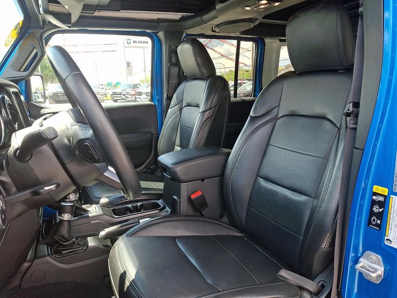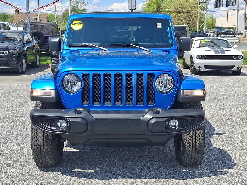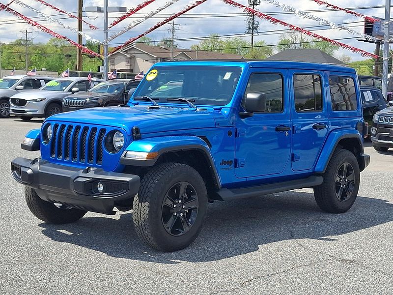 2022 Jeep Wrangler Unlimited Sahara Altitude 2.0L I4 DOHC 8-Speed Automatic 4D Sport Utility 4WD Hydro Blue Pearl CoatCarman Auto group is Delaware Pennsylvania New Jersey and Maryland's go to destination for quality used cars and trucks !!! We have proudly serviced Wilmington Newcastle Newark and Middletown for over 50 years !!!Certified. FCA US LLC Certified Pre-Owned Details: * Limited Warranty: 3 Month/3000 Mile (whichever comes first) after new car warranty expires or from certified purchase date * Vehicles Up to 75000 Miles and/or 5 Model Years. 24-Hour Towing & Roadside Assistance Car Rental Allowance CARFAX Vehicle History ReportTM and an Introductory 3-month Subscription to SiriusXM Satellite Radio & Certified Warranty Upgrades * Roadside Assistance * 125 Point Inspection * Vehicle History * Powertrain Limited Warranty: 84 Month/100000 Mile (whichever comes first) from original in-service date * Warranty Deductible: $100 * Transferable WarrantyWrangler Unlimited Sahara Altitude 4D Sport Utility 2.0L I4 DOHC 8-Speed Automatic 4WD Hydro Blue Pearl Coat Black Leather *ALL WHEEL DRIVE *CHRYSLER CERTIFIED *CLEAN VEHICLE HISTORY ****** NO ACCIDENTS*** *ONE OWNER *REMAINDER OF FACTORY WARRANTY 110 MPH Vehicle Max Speed Calibration 3.45 Rear Axle Ratio 4-Wheel Disc Brakes 9 Speakers ABS brakes Air Conditioning Altitude Package AM/FM radio: SiriusXM Anti-Spin Differential Rear Axle Apple CarPlay/Android Auto Auto-dimming Rear-View mirror Automatic temperature control Aux Battery Black Interior Accents Black Trail Rated Badge Blind Spot & Cross Path Detection Body Color 3-Piece Hard Top Body Color Grille w/Gloss Black Rings Brake assist Bridgestone Brand Tires Cloth Low-Back Bucket Seats Cold Weather Group Compass Delay-off headlights Driver door bin Driver vanity mirror Dual front impact airbags Dual front side impact airbags Electronic Stability Control Emergency communication system: SiriusXM Guardian Engine Oil Cooler Freedom Panel Storage Bag Front anti-roll bar Front Bucket Seats Front Center Armrest w/Storage Front dual zone A/C Front fog lights Front License Plate Bracket Front reading lights Fully automatic headlights Garage door transmitter Heated door mirrors Heated Front Seats Heated Steering Wheel Heavy Duty Suspension w/Gas Shocks Illuminated entry Integrated roll-over protection Leather steering wheel Leather Trimmed Bucket Seats w/2_L Leather Wrapped Park Brake Handle Leather Wrapped Shift Knob Low tire pressure warning Manufacturer's Statement of Origin Matte Black Jeep Badge Mold In Color Bumper w/Gloss Black MOPAR Hardtop Headliner Navigation System No Soft Top Non-Lock Fuel Cap w/o Discriminator Occupant sensing airbag Outside temperature display Panic alarm ParkSense Rear Park Assist System ParkView Rear Back-Up Camera Passenger door bin Passenger vanity mirror Power door mirrors Power steering Power Top Quarter Window Storage Bag Power windows Quick Order Package 22L Altitude Radio data system Radio: Uconnect 4C Nav w/8.4"Display Rear anti-roll bar Rear reading lights Rear Window Defroster Rear Window Wiper/Washer Remote keyless entry Remote Start System Removable Rear Quarter Windows Safety Group Security system Sky 1-Touch Power Top Speed control Split folding rear seat Steering wheel mounted audio controls Stop-Start Dual Battery System Tachometer Telescoping steering wheel Tilt steering wheel Traction control Trip computer Variably intermittent wipers Voltmeter Wheels: 18"x 7.5"Gloss Black Aluminum Wizard Black Instrument Panel Bezels.