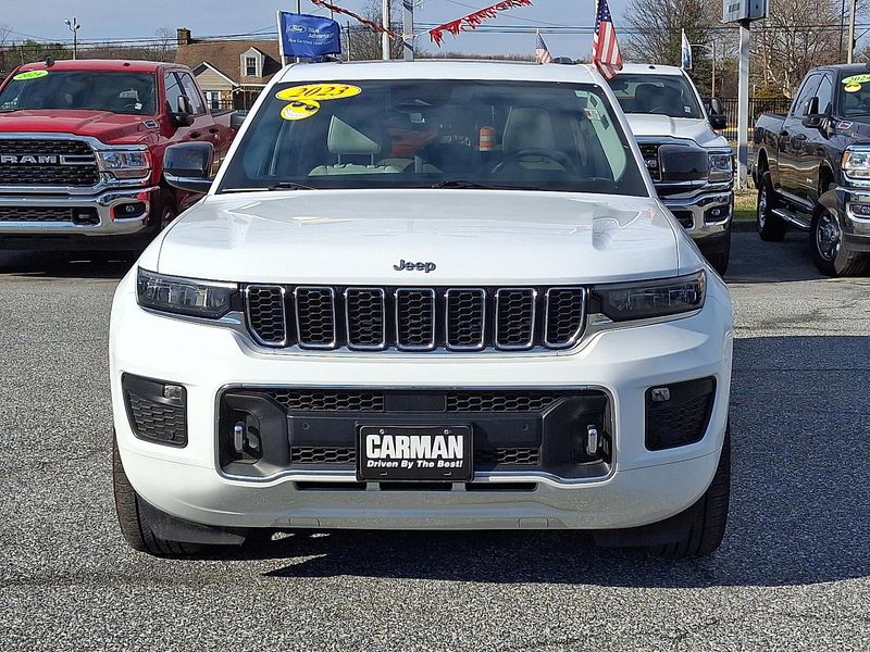 2023 Jeep Grand Cherokee Overland 3.6L V6 24V VVT 8-Speed Automatic 4D Sport Utility 4WD Bright White ClearcoatCarman Automotive has all your needs from NEW to USED Vehicles!!! Please call 302-323-1666 for all the information about any of our Vehicles in Stock!!!Certified. Certified Pre-Owned Go Details: * Vehicles Between 6-10 Model Years and/or 75001-120000 Miles. Thorough Reconditioning Process Using Authentic Mopar Parts. 3-Month Trial Subscription for SiriusXM GuardianTM and Satellite Radio * Vehicle History * Limited Warranty: 3 Month/3000 Mile Runs From the Date of the CPOV Sale or at the expiration of the remaining 3/36 Basic New Vehicle Warranty (whichever is more beneficial to the customer) * Warranty Deductible: $100 * Roadside Assistance * 125 Point InspectionGrand Cherokee Overland 4D Sport Utility 3.6L V6 24V VVT 8-Speed Automatic 4WD Bright White Clearcoat Steel Gray/Global Black Leather *ALL WHEEL DRIVE *CLEAN VEHICLE HISTORY ****** NO ACCIDENTS*** *RECENT CARMAN TRADE 10 Speakers 19 Speakers High Performance Audio 3.45 Rear Axle Ratio 4-Wheel Disc Brakes 950 Watt Amplifier ABS brakes Active Noise Control System Adaptive suspension Air Conditioning Alloy wheels AM/FM radio: SiriusXM with 360L Anti-whiplash front head restraints Audio memory Auto High-beam Headlights Auto-dimming door mirrors Auto-dimming Rear-View mirror Auto-leveling suspension Automatic temperature control Auxiliary Battery Brake assist Bumpers: body-color Compass Delay-off headlights Driver door bin Driver vanity mirror Dual front impact airbags Dual front side impact airbags Electronic Stability Control Emergency communication system Four wheel independent suspension Front anti-roll bar Front Bucket Seats Front Center Armrest w/Storage Front dual zone A/C Front fog lights Front License Plate Bracket Front reading lights Fully automatic headlights Garage door transmitter Heated door mirrors Heated front seats Heated rear seats Heated steering wheel Illuminated entry Knee airbag Low tire pressure warning Memory seat Nappa Leather Seats Navigation System Normal Duty Suspension Occupant sensing airbag Outside temperature display Overhead airbag Overhead console Panic alarm Passenger door bin Passenger vanity mirror Power door mirrors Power driver seat Power Liftgate Power moonroof Power passenger seat Power steering Power windows Quick Order Package 22N Radio data system Radio: Uconnect 5 Nav w/10.1"Display Rain sensing wipers Rear anti-roll bar Rear reading lights Rear seat center armrest Rear window defroster Rear window wiper Remote keyless entry Security system Speed control Speed-Sensitive Wipers Split folding rear seat Spoiler Steering wheel memory Steering wheel mounted audio controls Tachometer Telescoping steering wheel Tilt steering wheel Traction control Trip computer Turn signal indicator mirrors Variably intermittent wipers Ventilated front seats Voltmeter Wheels: 20"x 8.5"Machined Face Aluminum.
