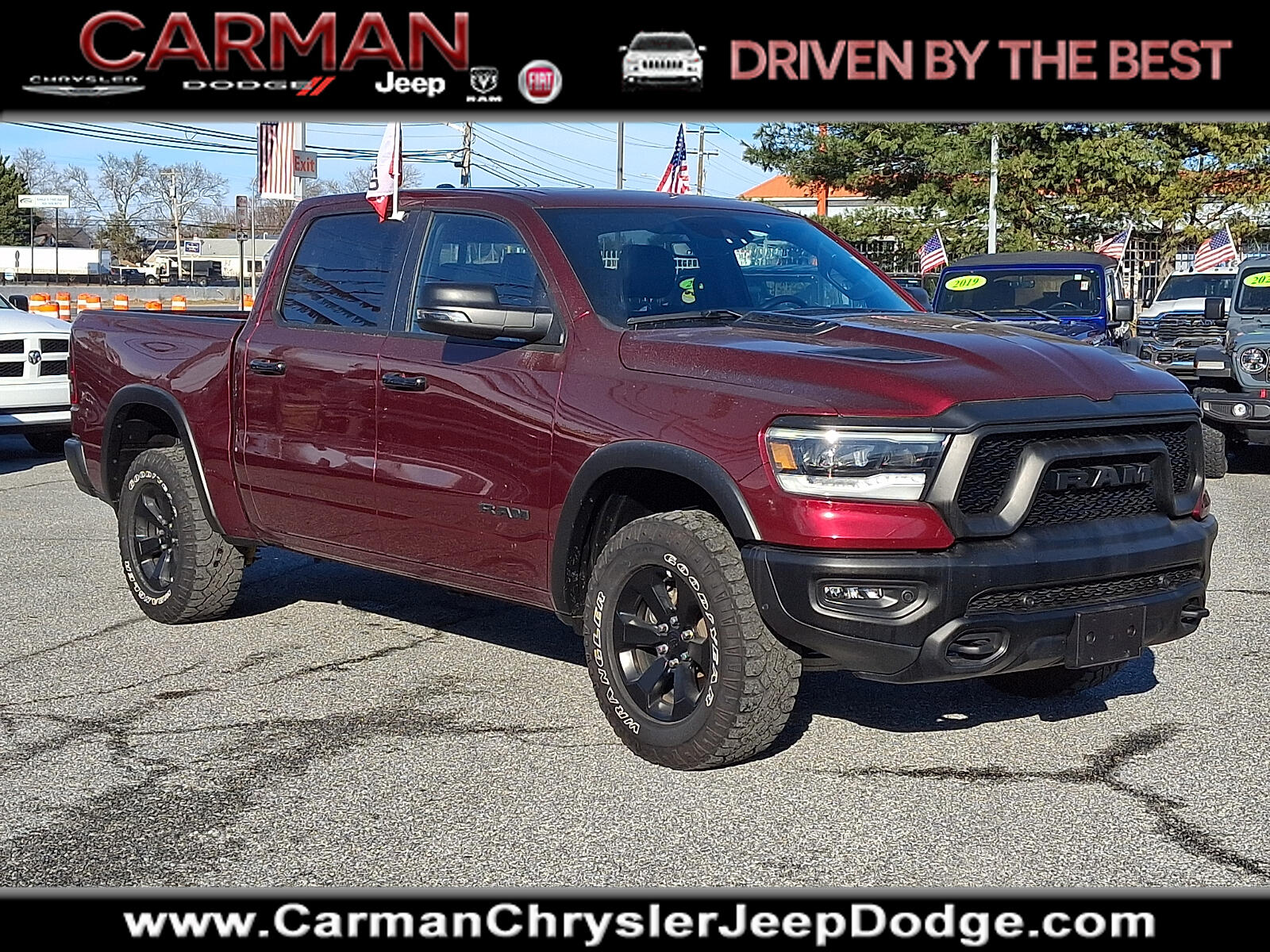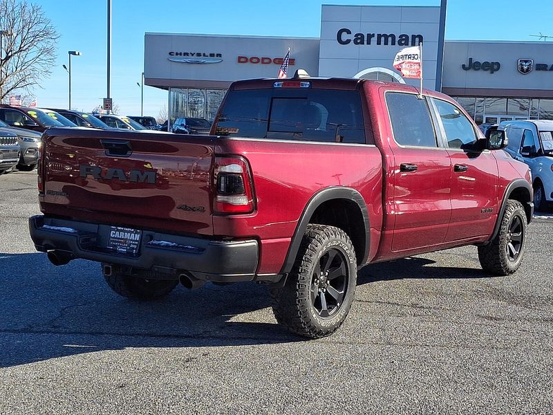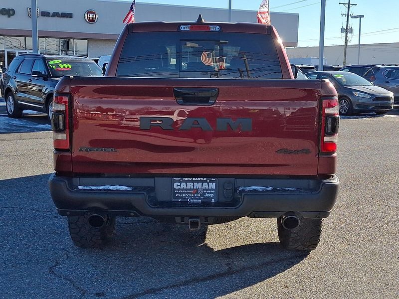 2023 Ram 1500 Rebel HEMI 5.7L V8 Multi Displacement VVT eTorque 8-Speed Automatic 4D Crew Cab 4WD Delmonico Red PearlcoatCarman Automotive has all your needs from NEW to USED Vehicles!!! Please call 302-323-1666 for all the information about any of our Vehicles in Stock!!!Certified. FCA US LLC Certified Pre-Owned Details: * Powertrain Limited Warranty: 84 Month/100000 Mile (whichever comes first) from original in-service date * Vehicles Up to 75000 Miles and/or 5 Model Years. 24-Hour Towing & Roadside Assistance Car Rental Allowance CARFAX Vehicle History ReportTM and an Introductory 3-month Subscription to SiriusXM Satellite Radio & Certified Warranty Upgrades * 125 Point Inspection * Roadside Assistance * Vehicle History * Transferable Warranty * Warranty Deductible: $100 * Limited Warranty: 3 Month/3000 Mile (whichever comes first) after new car warranty expires or from certified purchase date1500 Rebel 4D Crew Cab HEMI 5.7L V8 Multi Displacement VVT eTorque 8-Speed Automatic 4WD Delmonico Red Pearlcoat Black Leather *CHRYSLER CERTIFIED *CLEAN VEHICLE HISTORY ****** NO ACCIDENTS*** *ONE OWNER *RECENT CARMAN TRADE *REMAINDER OF FACTORY WARRANTY 115V Auxiliary Rear Power Outlet 12"Touchscreen Display 2-Door Passive Entry Front Door Locks 2nd Row In Floor Storage Bins 3.92 Rear Axle Ratio 33 Gallon Fuel Tank 4 Way Front Headrests 4-Wheel Disc Brakes 48V Belt Starter Generator 4G LTE Wi-Fi Hot Spot ABS brakes Accent Color Door Handles Air Conditioning Apple CarPlay Auto-Dimming Exterior Driver Mirror Automatic temperature control Black Exterior Mirrors Black Front Bumper w/Black Plate Black Premium Power Mirrors Blind Spot & Cross Path Detection Brake assist Bucket Seats Class IV Receiver Hitch Cloth/Vinyl Low Back Bucket Seats Comfort/Convenience Group Compass Connected Travel & Traffic Services Connectivity - US/Canada Convex Wide-Angle Exterior Mirror Insert Delay-off headlights Disassociated Touchscreen Display Dome Dual LED Reading Lamp Driver door bin Dual front impact airbags Dual front side impact airbags Dual-Pane Panoramic Sunroof Electronic Stability Control Emergency communication system: SiriusXM Guardian Exterior Mirrors Courtesy Lamps Exterior Mirrors w/Heating Element Exterior Mirrors w/Memory Exterior Mirrors w/Supplemental Signals Foam Bottle Insert (Door Trim Panel) For Details Visit DriveUconnect.com For More Info Call 800-643-2112 Front anti-roll bar Front Bucket Seats Front Center Armrest w/Storage Front dual zone A/C Front fog lights Front reading lights Front Seat Back Map Pockets Front wheel independent suspension Full Length Upgraded Floor Console Fully automatic headlights Global Telematics Box Module (TBM) Google Android Auto GPS Antenna Input GPS Navigation Grille Surround 2 Black Texture 3 Black harman/kardon 19 Speaker Premium Sound HD Radio Heated Front Seats Heated Second Row Seats Heated Steering Wheel Illuminated entry Instrument Cluster Theme 5 - Rebel 2 Integrated Center Stack Radio Integrated Voice Command w/Bluetooth Leather steering wheel Low tire pressure warning Media Hub w/2 Charge Only USBs Night Edition Occupant sensing airbag Off-Road Information Pages Outside temperature display Overhead airbag Overhead console Overhead LED Lamps Panic alarm ParkSense Front/Rear Park Assist w/Stop ParkView Rear Back-Up Camera Passenger door bin Passenger vanity mirror Power 2-Way Driver Lumbar Adjust Power 8-Way Driver & Passenger Seats Power 8-Way Driver Seat Power Adjustable Pedals Power steering Power windows Power-Folding Mirrors Premium Overhead Console Quick Order Package 27W Rebel Radio: Uconnect 5 Nav w/12.0"Display Rain Sensitive Windshield Wipers RAM Grille Badge - Black Rear 60/40 Folding Seat Rear anti-roll bar Rear Dome w/On/Off Switch Lamp Rear Power Sliding Window Rear seat center armrest Rea